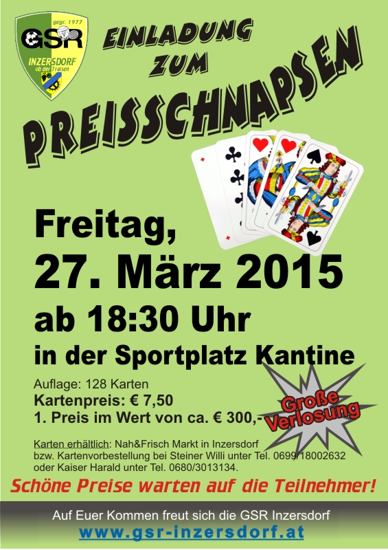 Am Freitag, 27. März veranstalteten wir bereits zum 25. Mal unser traditionelles Preisschnapsen in der Vereinskantine am Sportplatz.